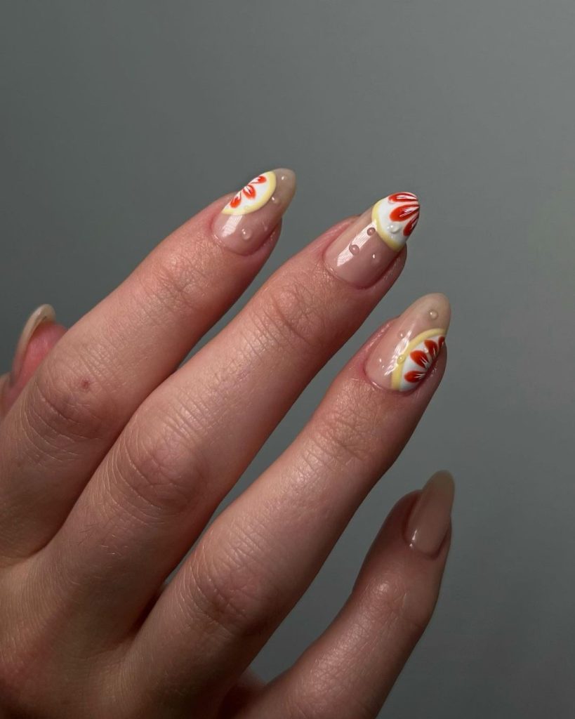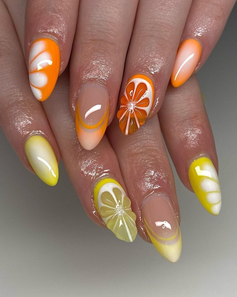 34. 3D Orange & Lemon Nails