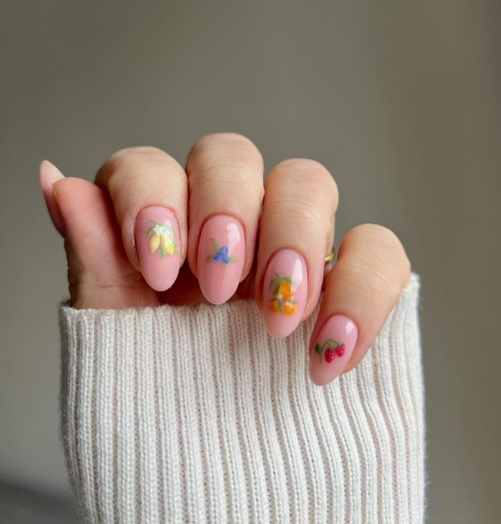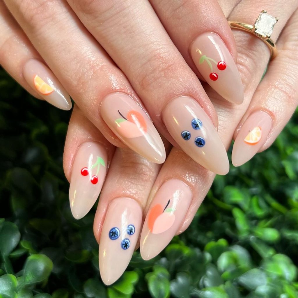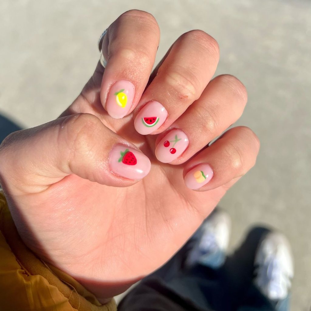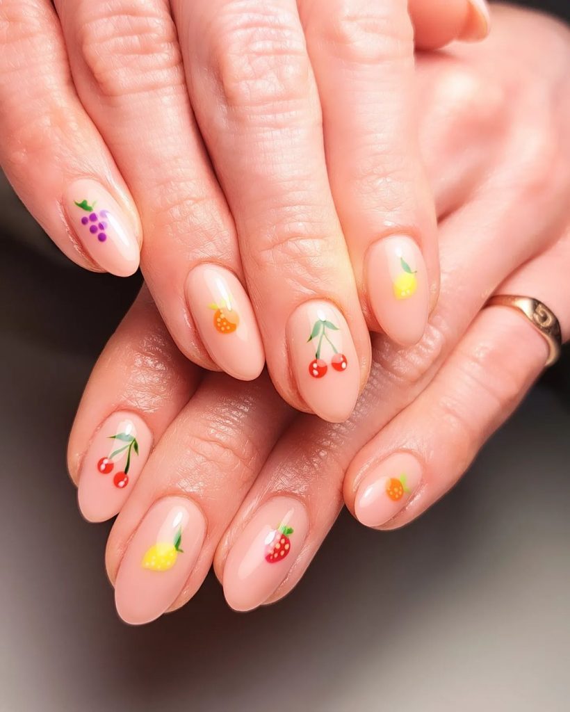 17. Little Fruits On Nude Nails