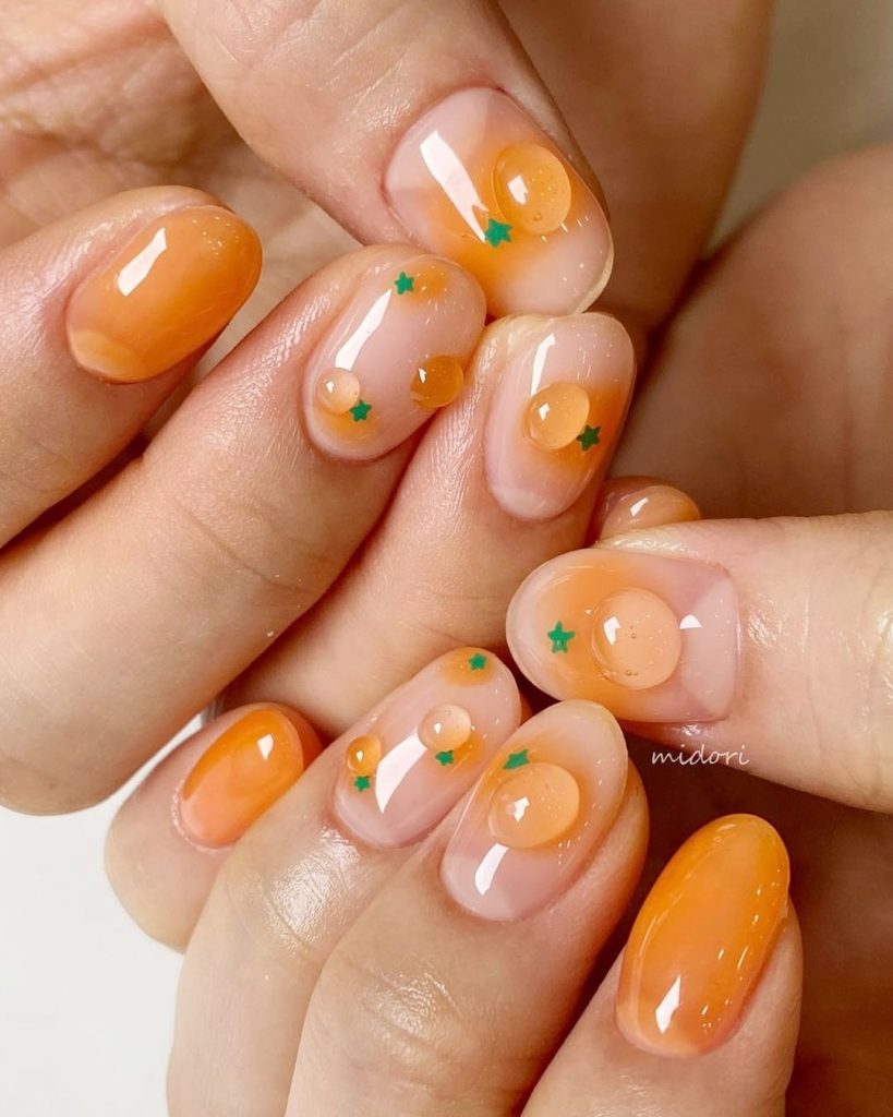3. Juicy Orange With Water Dots Nails