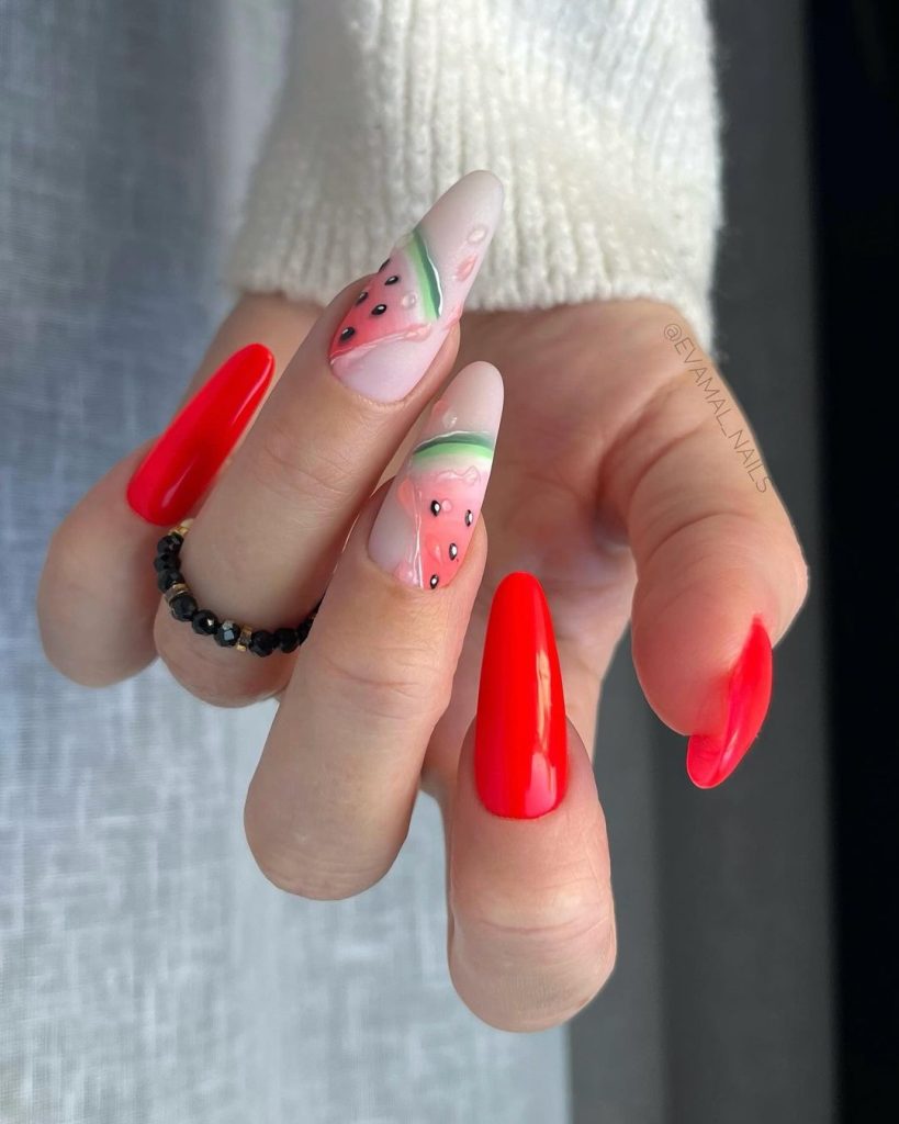 52. Juicy Watermelon Nails