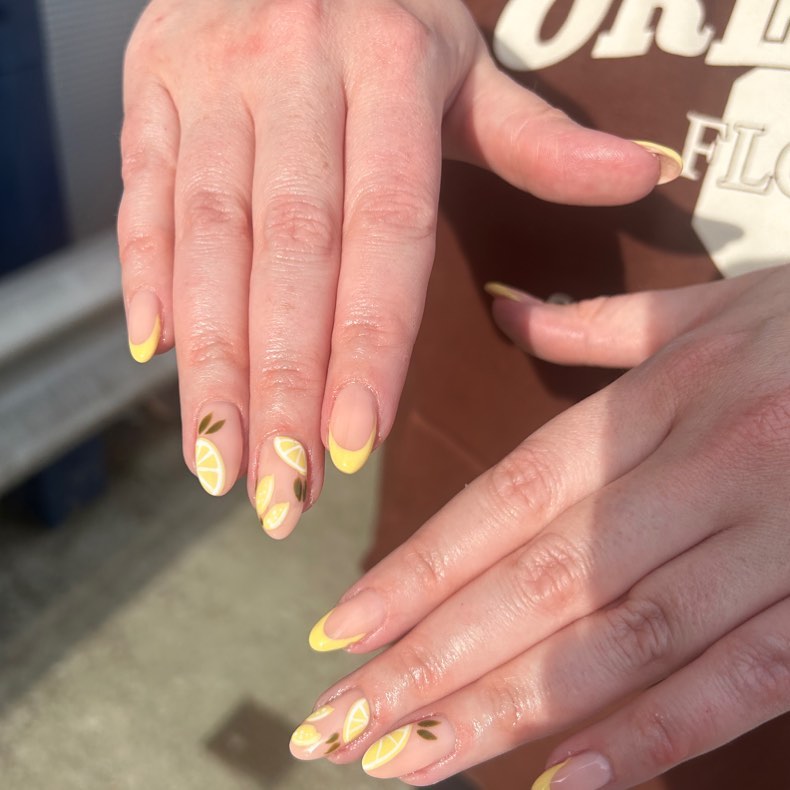 Frenchy Lemon Nails are a twist on the classic French manicure. The lemon designs add a fresh and fun touch to a timeless style.