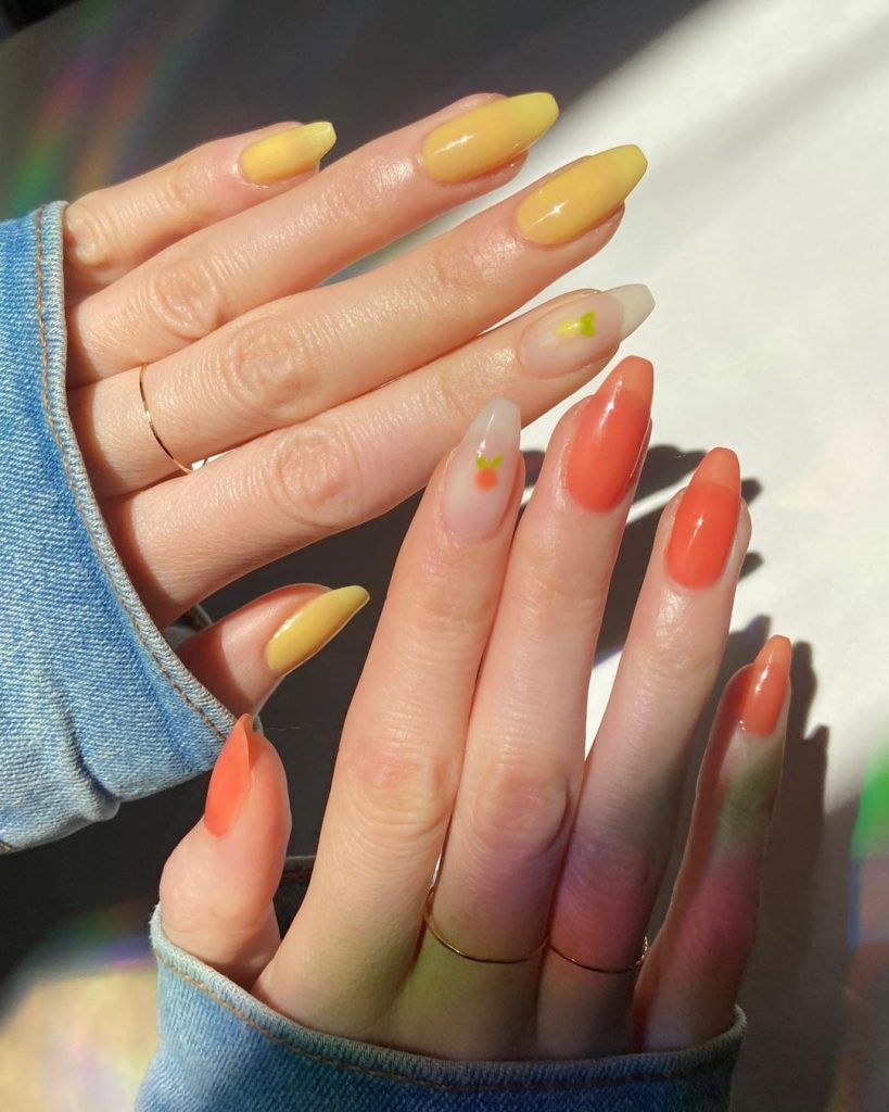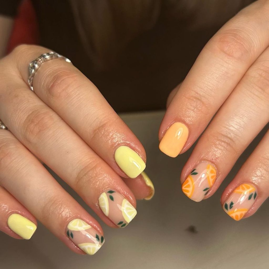 23. Lemon & Orange Combo Nails