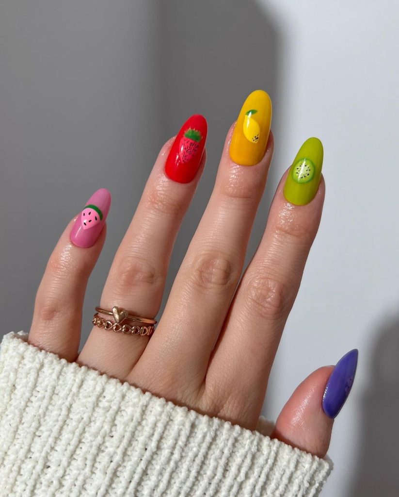 30. Rainbow Fruit Nails