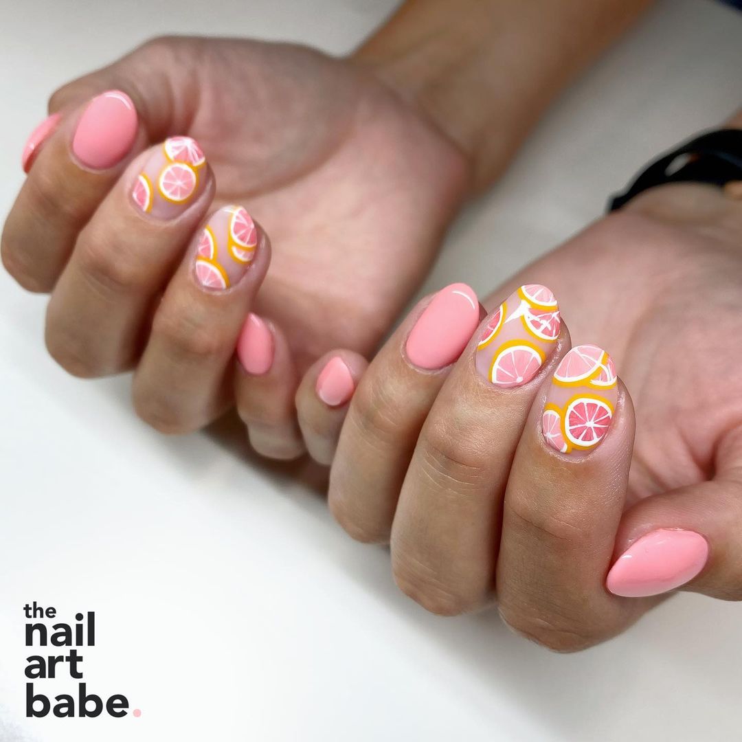 71. Pink Oranges Nails