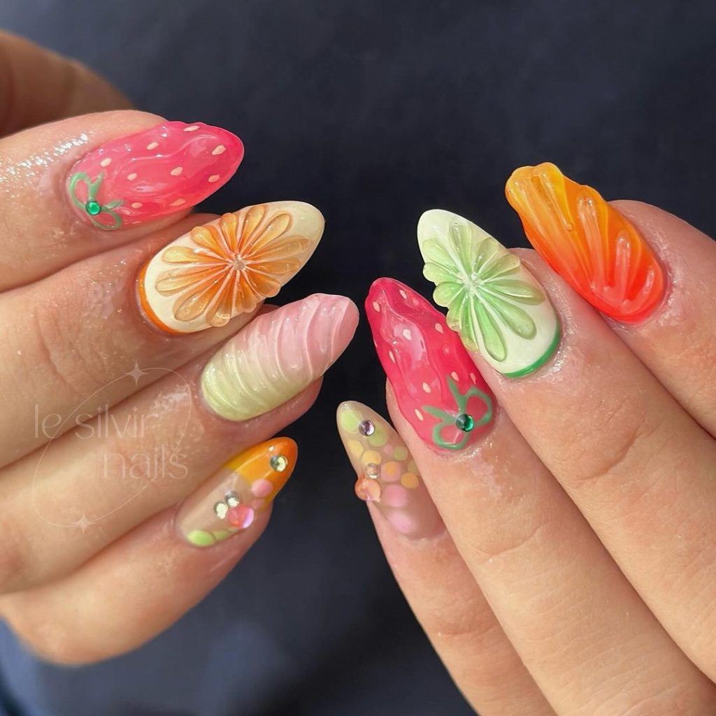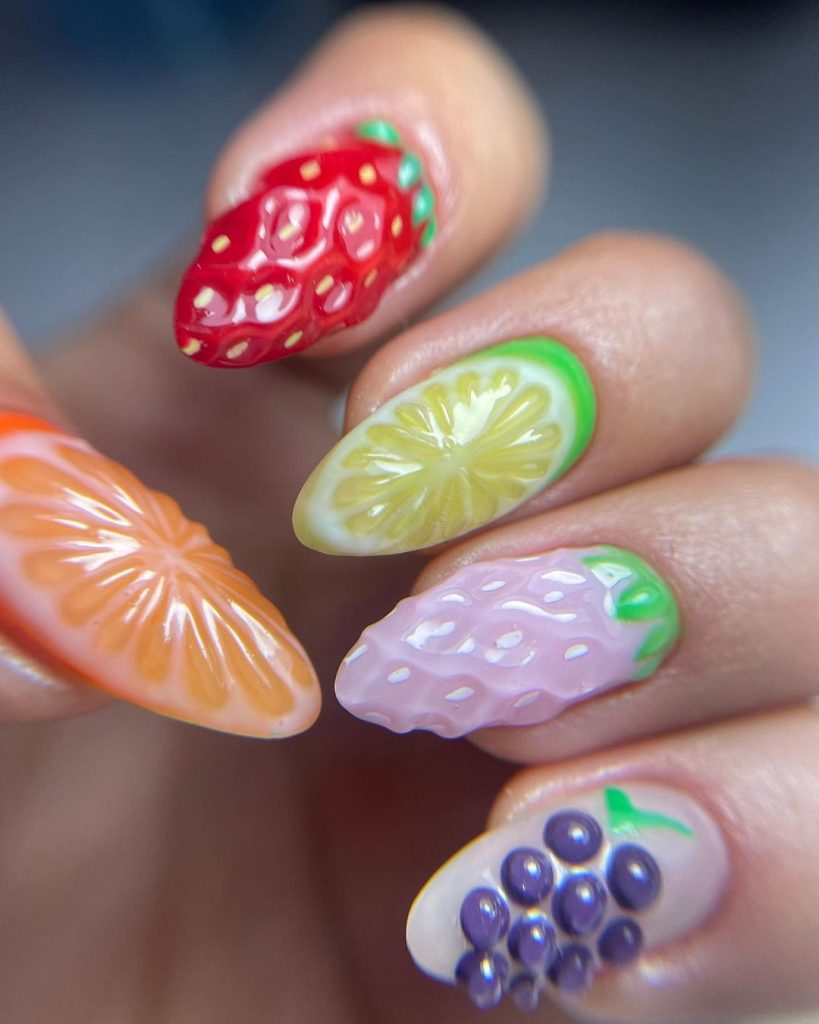21. 3D Aesthetic Fruit Nails