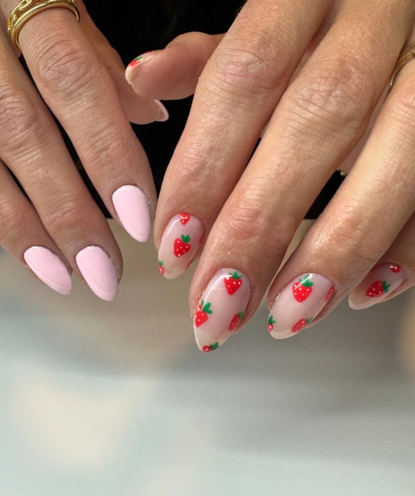 6. Pinky Strawberry Nails