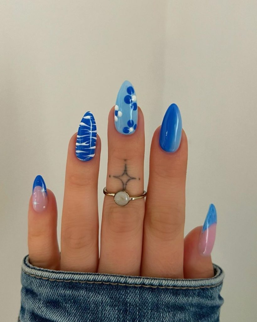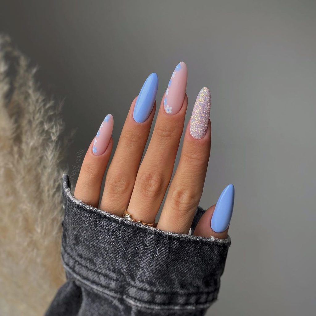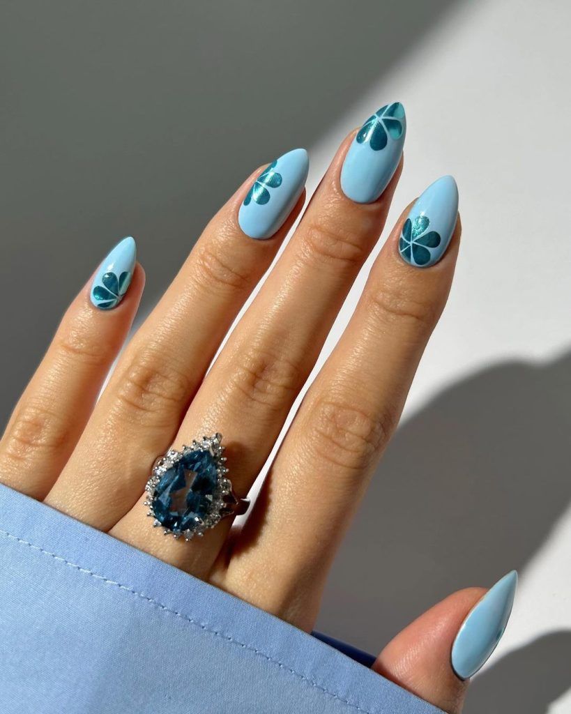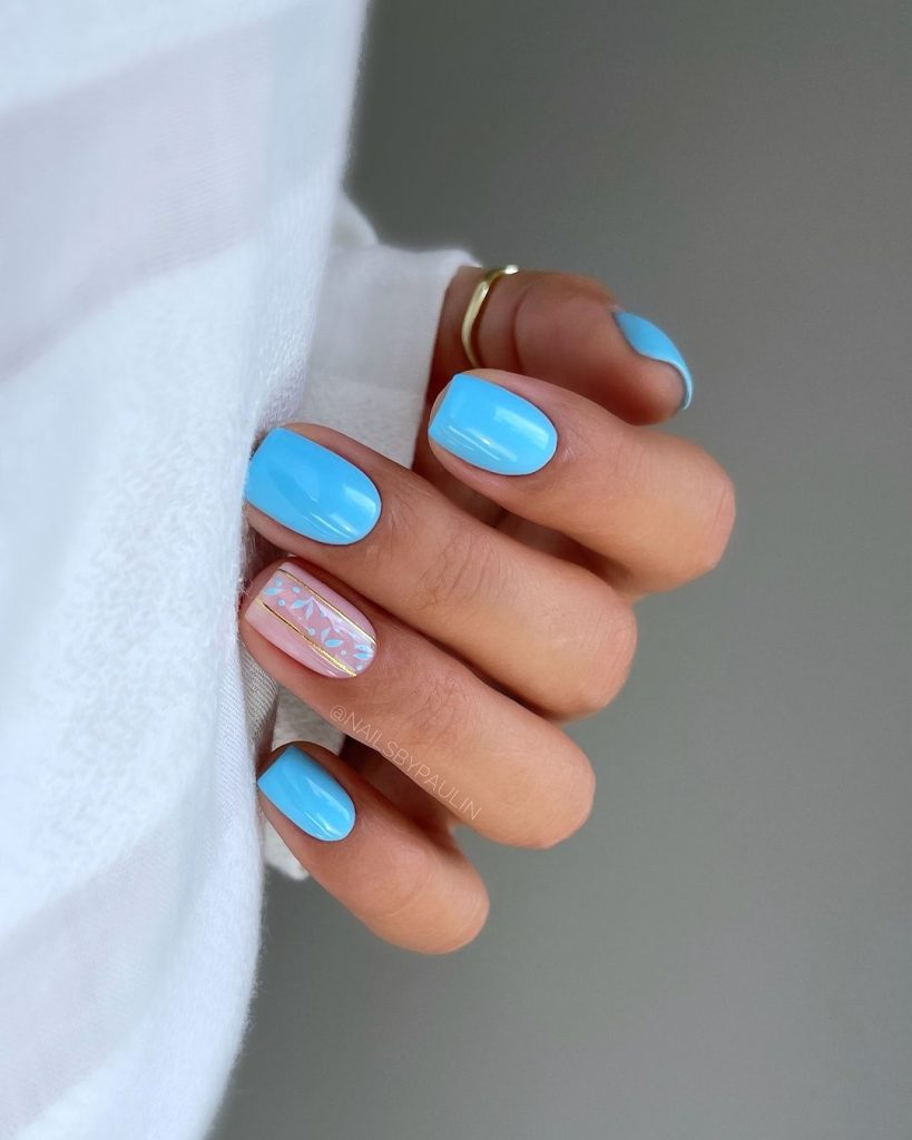 Celebrate the freshness of spring with blue nails that bloom with style! This design captures the vibrant and cheerful essence of the season, making it perfect for a bright and lively appearance that celebrates spring’s arrival.