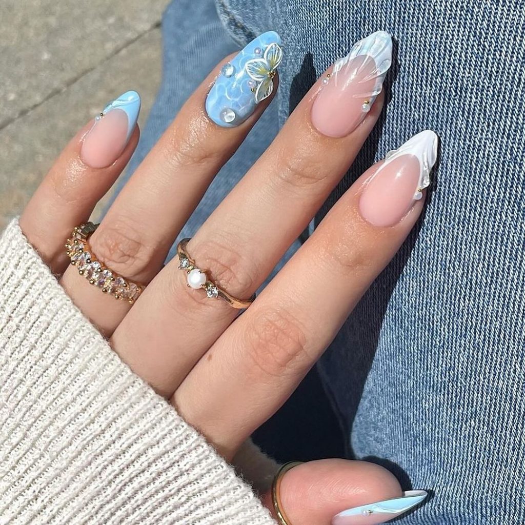 Babe, these girly and feminine blue nails are simply irresistible! The soft blue shade with delicate touches is perfect for adding a touch of elegance and sweetness to your look. They’re so dainty, you’ll feel like a princess every time you glance at your hands!