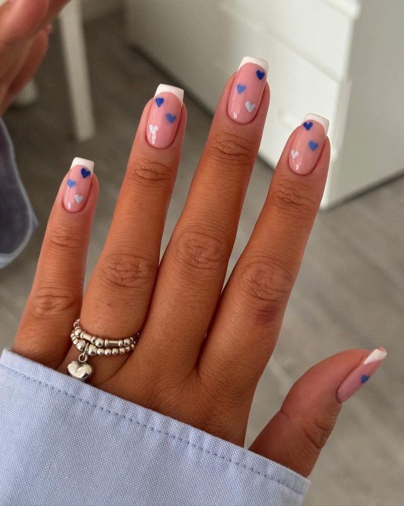23. Mini Hearts & Dots Over Blue Nails