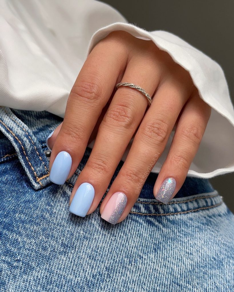 Okay, you’re gonna fall in love with this combo! Baby blue and pink nails are the perfect blend of soft and stunning. It’s like your nails are having a sweet little party with the best pastel pals. Perfect for those days when you just want to look effortlessly cute!