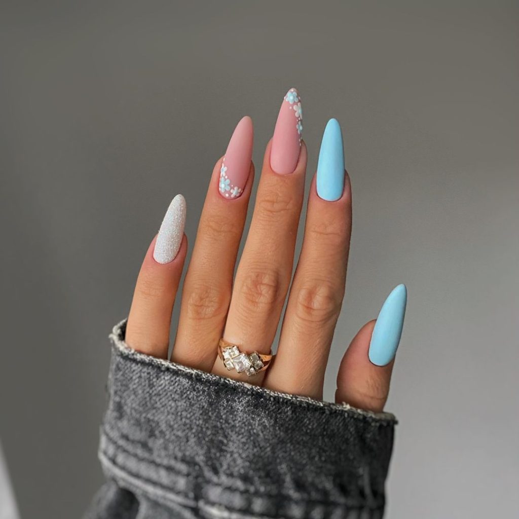 29. Baby Blue & Pink Nails For A Stunning Look