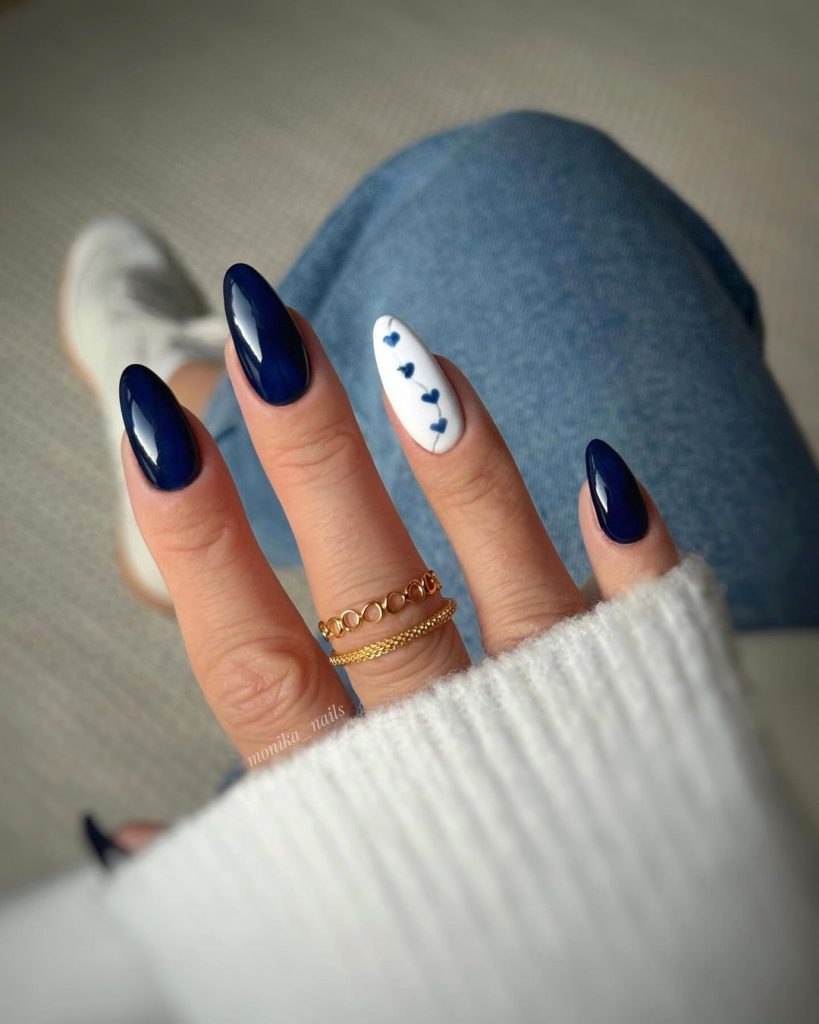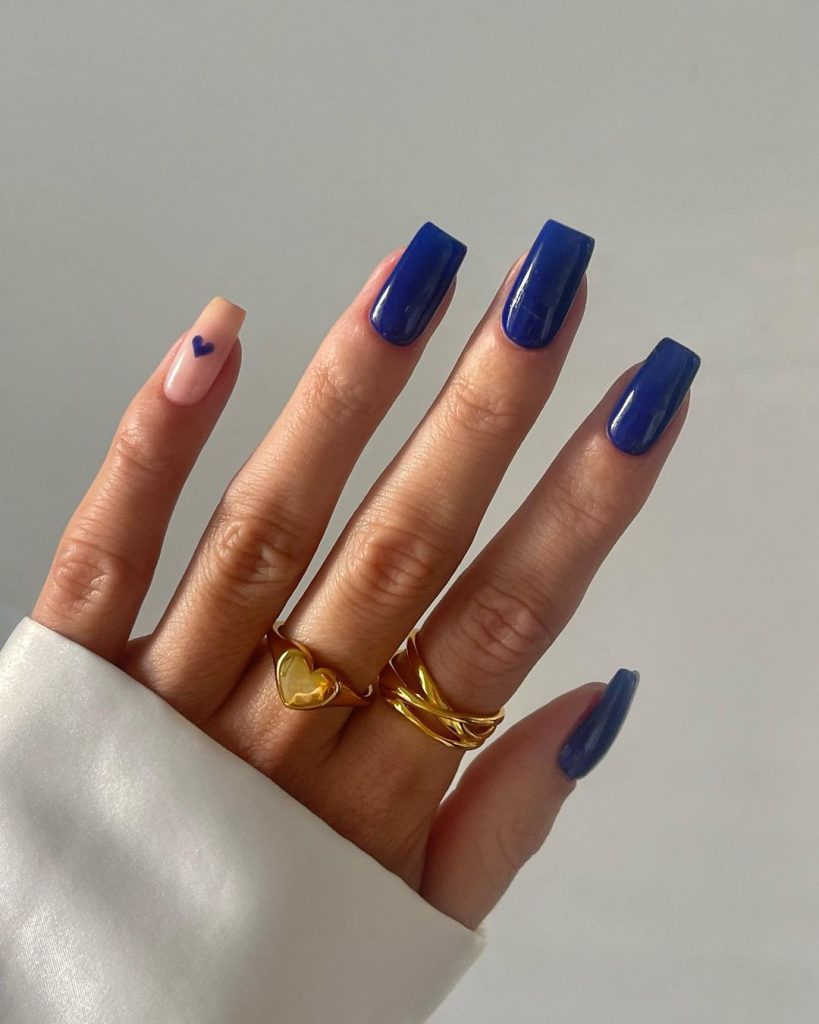 3. Royal Blue Nails With Little Heart