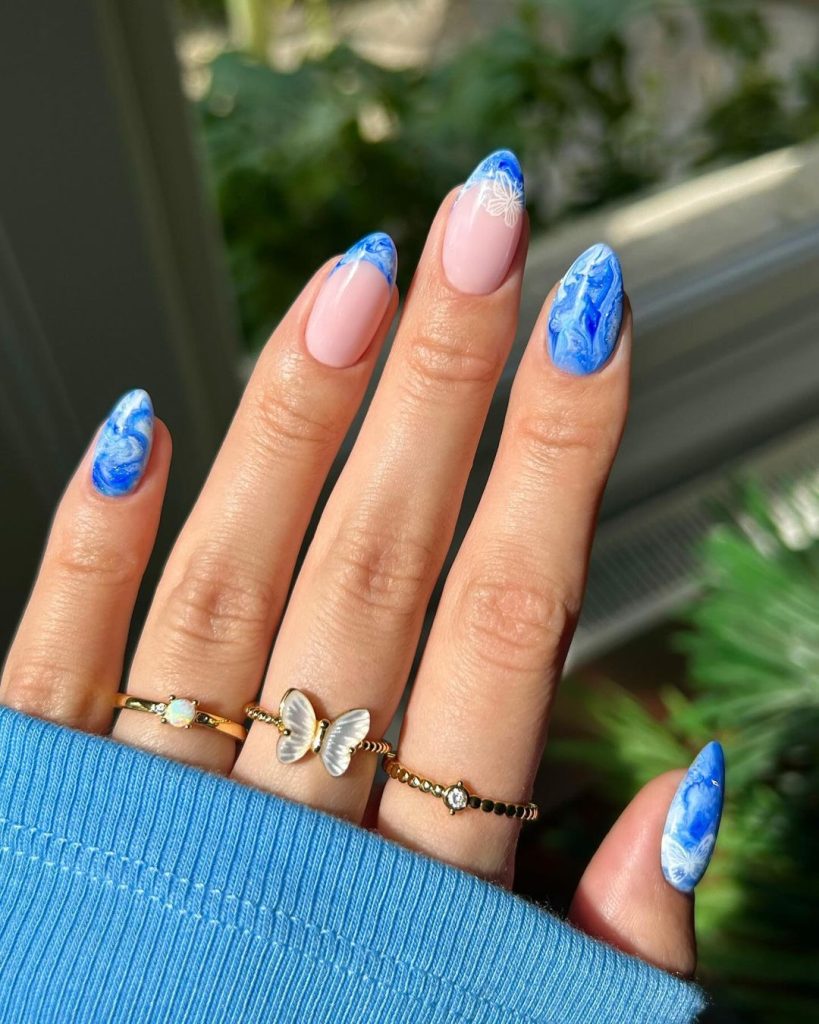 Marbled blue nails are pure artistic perfection! They’re perfect for when you want a unique, one-of-a-kind design. These nails are my fave for a look that’s both chic and creative. Marbles never go out of style!
